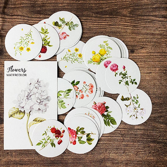 Round Flower Stickers | 46 Pretty Floral Vintage Flower Scrapbook Round Mini Box Stickers Collage Albums
