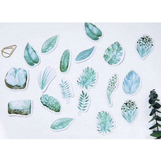 Green Stickers | 45 Watercolour Leaf Palm Leaves Rubber Plant Mini Box Sticker | Peel Off Sticker | Scrapbooking Journalling