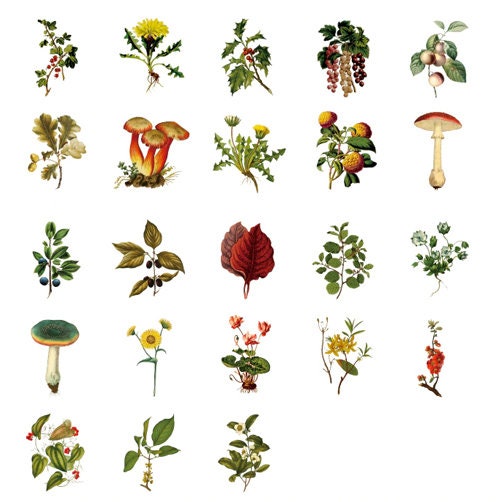 Autumn Forest Stickers Forest Flowers & Fungus Dandelion Mini Box | 46 Peel Off Sticker | Scrapbooking Journalling