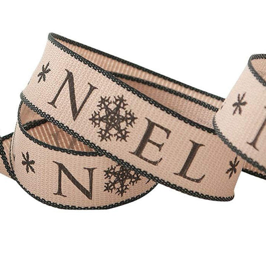 Christmas Ribbon 15mm Ivory Cotton Grey Joyeux Noel & Snowflake Print 1m 5m 25m