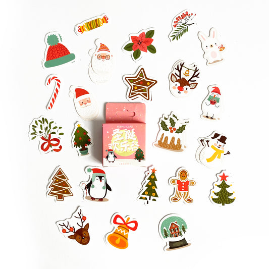 Christmas Stickers | Santa Snowman Penguin Mini Box | Cards Envelopes Kids Craft