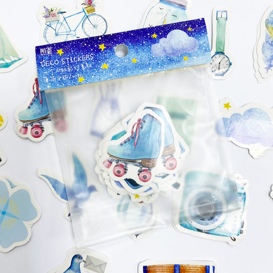 Cute Journal Stickers | 40 Paper Peel Off Hobby Set | Camera Bicycle Diary Bow
