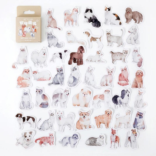 Cute Cat & Dog Pet Stickers | 45 Mini Box Scrapbooking Sticker | Journalling Stationery Albums