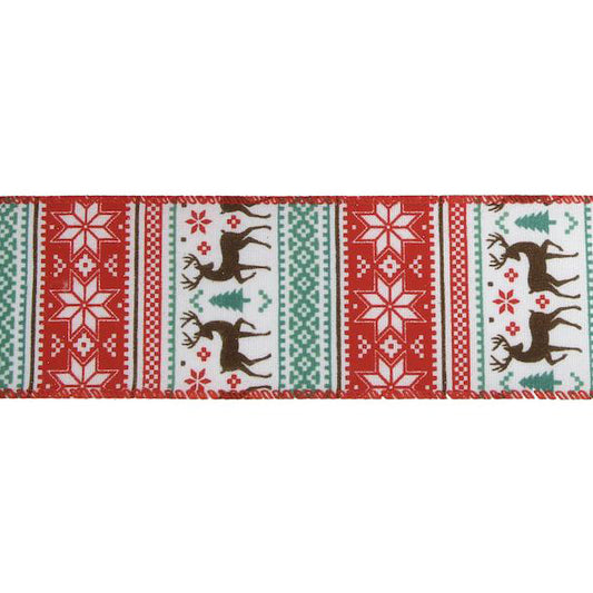 Christmas Ribbon | Snowflake Reindeer Cream Red | 16mm 25mm | Berisford's Wrapping