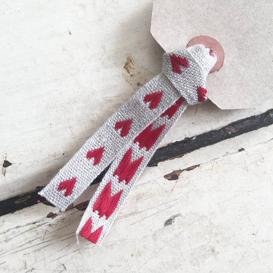 Linen Woven Heart Ribbon 10mm Rustic Red & Natural Cream | Craft Sewing Wedding Valentine's Wrapping | Per Metre or Full 25m Roll