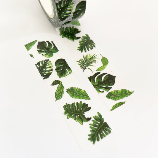 Green & White Rubber House Plant Paper Washi Tape | 15mm x 10m | Stationery Craft Journalling Scrapbooking Journal