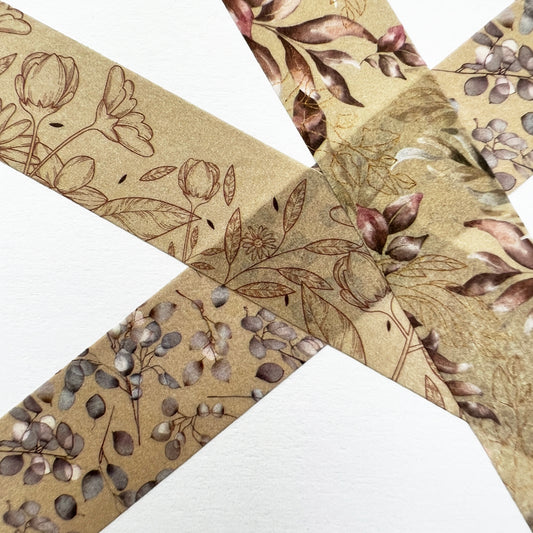 Flowers & Foliage Washi Tape | Set Of Three | 15mm x 10m | Journalling Scrapbook Planner