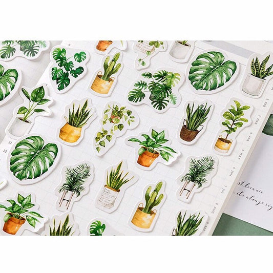Green Plant Stickers | Pot Plants Leaf Cactus | Mini Box Peel Off Sticker | Scrapbooking Journalling