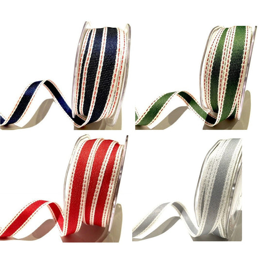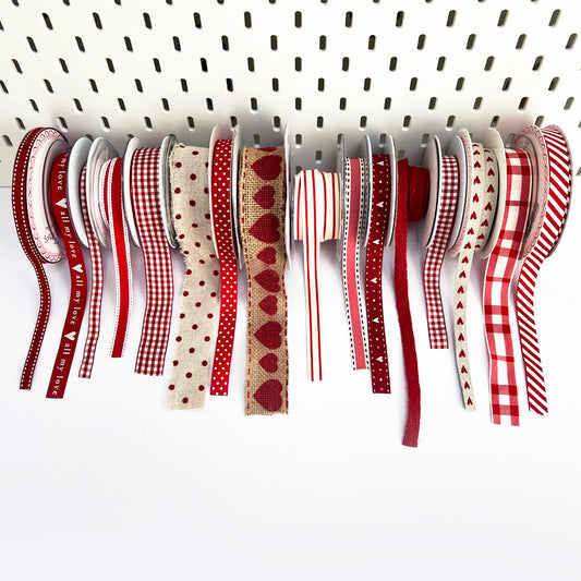 Red & White Stitch Ribbon 9mm | Valentine's Wrap & Craft | Metre or Roll