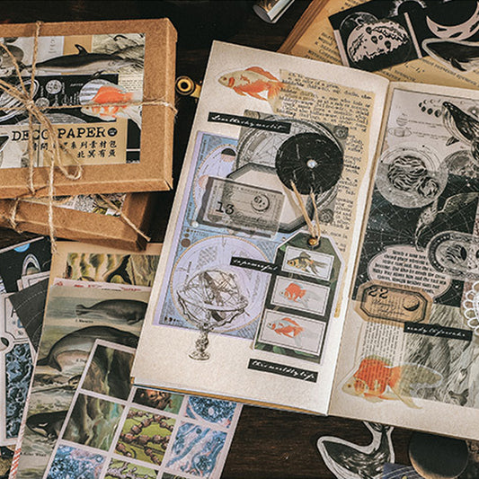 Scrapbooking Sticker & Paper Set | Vintage Ephemera | 200 pcs | Junk Journaling