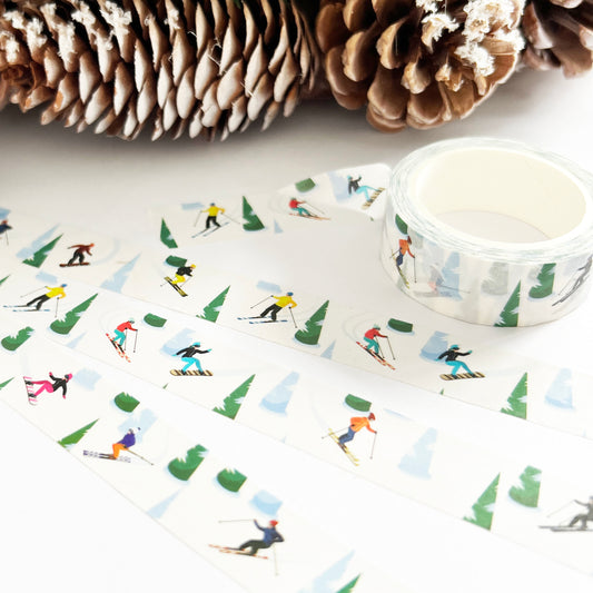 Retro Ski Washi Tape | Skier Snowboard White | 15mm x 10m | Wrapping