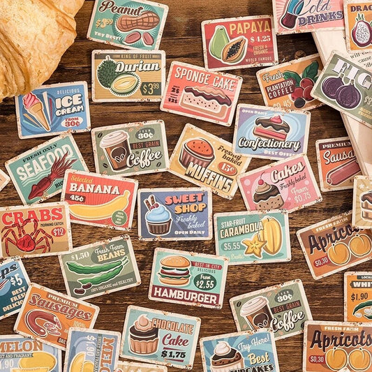 Retro Food Advertising Stickers | 45 Mini Box Scrapbooking | Journalling Stationery