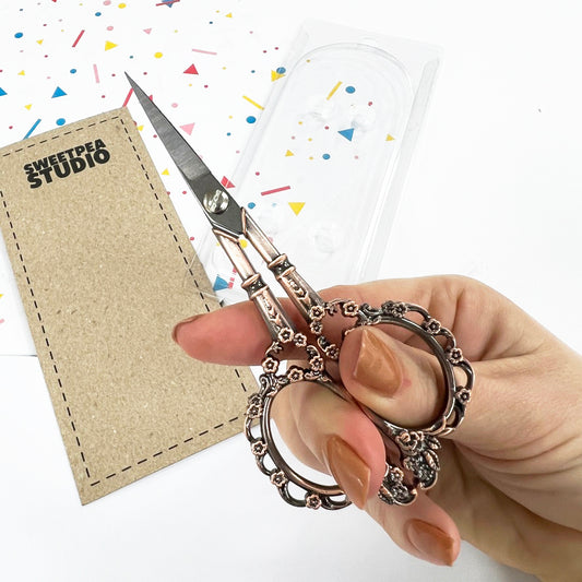 Rose Gold Coloured Flower Scissors | Floral Handle Needlework Embroidery Quilting Craft Manicure Vintage Style