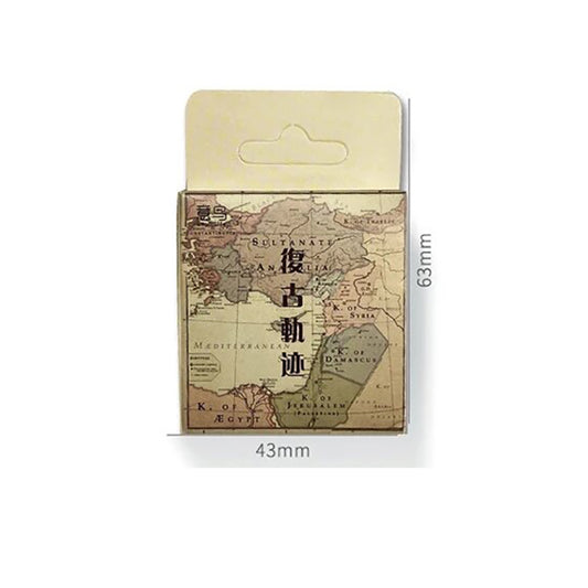 Round Vintage Map Stickers | 46 Mini Box Scrapbooking Sticker | Travel Journalling Stationery Albums