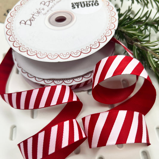 Stripe Ribbon 16mm 25mm Red & White Candy Cane Grosgrain | Christmas Wrapping Craft Wreath Bows | Metre or 25m Roll
