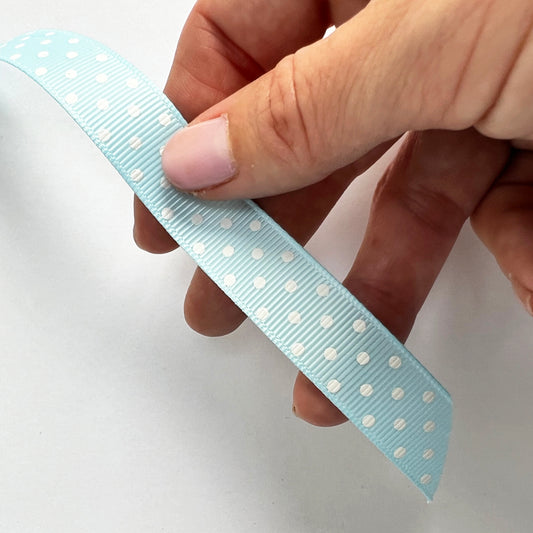 Spot Grosgrain Ribbon | Baby Blue 16mm Polka Dot Spot | 1m 25m Roll