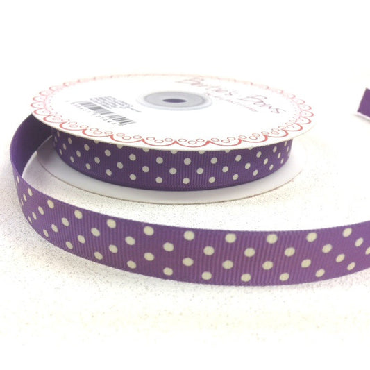 Spot Grosgrain Ribbon | Purple 16mm Polka Dot Spot | 1m 25m Roll