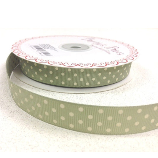 Spot Grosgrain Ribbon | Sage Green 16mm Polka Dot Spot | 1m 25m Roll