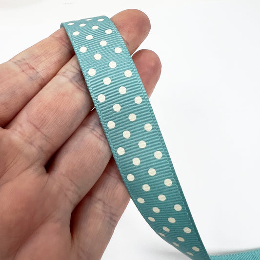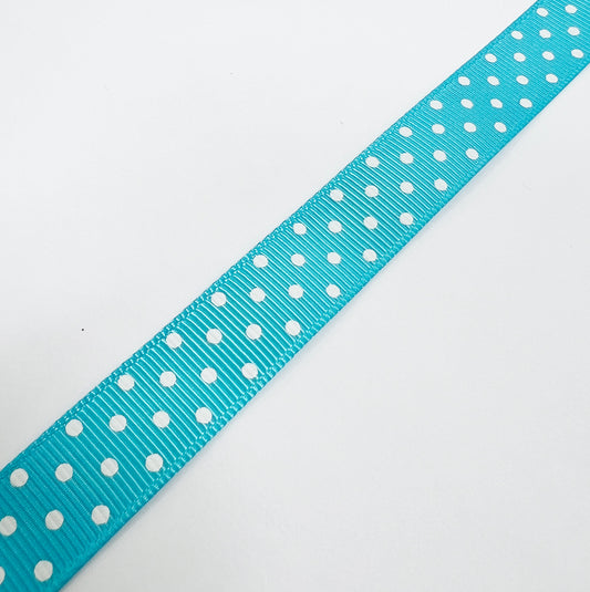 Spot Grosgrain Ribbon |Turquoise Blue 16mm Polka Dot Spot | 1m 25m Roll