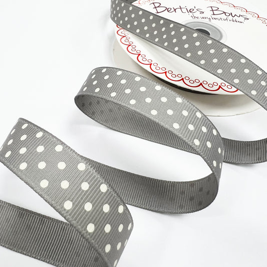 Spot Grosgrain Ribbon | Grey 16mm Polka Dot Spot | 1m 25m Roll