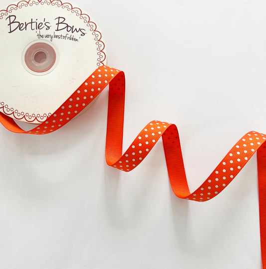 Spot Grosgrain Ribbon | Orange 16mm Polka Dot Spot | 1m 25m Roll
