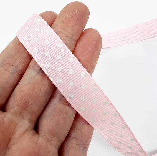 Spot Grosgrain Ribbon | Baby Pink 16mm Polka Dot Spot | 1m 25m Roll