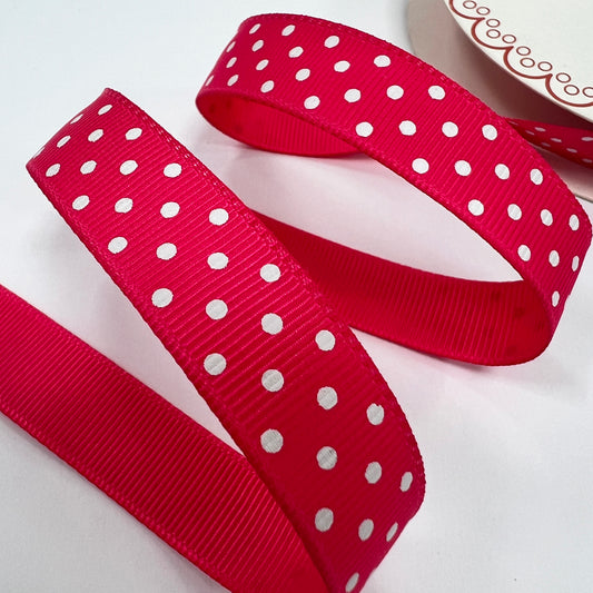 Spot Grosgrain Ribbon | Hot Pink 16mm Polka Dot Spot | 1m 25m Roll | Valentine's Day