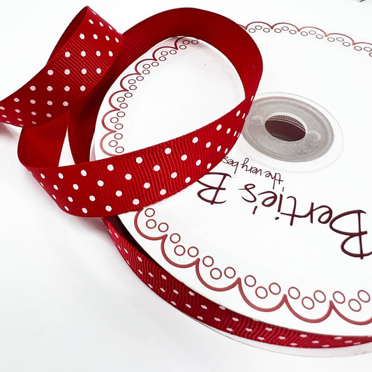 Spot Grosgrain Ribbon | Red 16mm Polka Dot Spot | 1m 25m Roll | Valentines Day