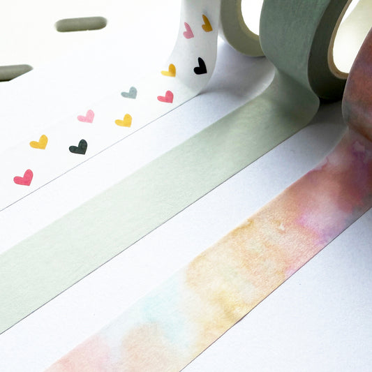 Set of 3 Washi Set | Pastel Watercolour Hearts Blues | Paper Stationery | 1.5cm x 10m | Journalling