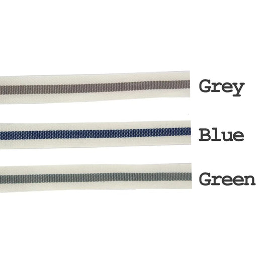 Vintage Cotton Ribbon | 15mm Centre Stripe Grey Sage Green Blue | 1m 25yd Roll