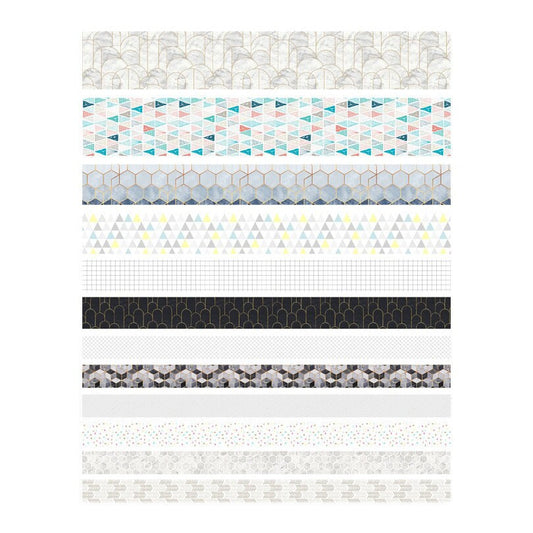Washi Tape Print & Solid Paper | Set of 12 | Journalling Scrapbooking Grey