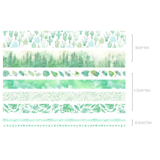 Tropical Green Washi Tape Set | Summer Plants Cactus Rubber Plant | Journalling Scrapbooking Paper Craft | Set of 8