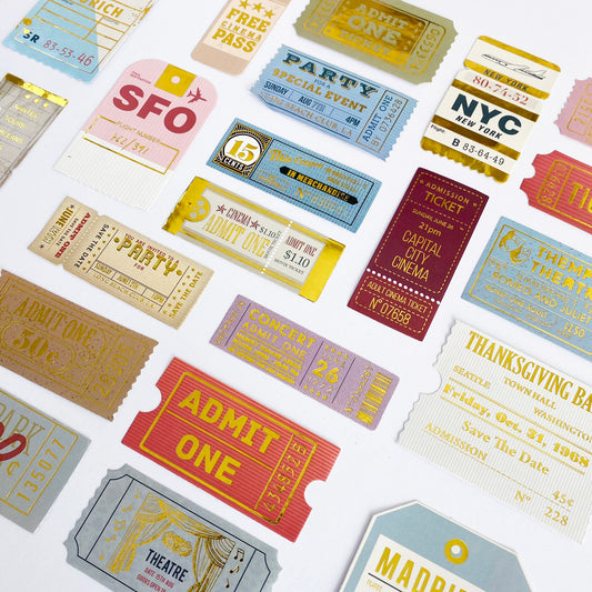Ticket Travel Stickers | Gold Foil Paper Peel Off | Journal Scrapbook Vintage 24