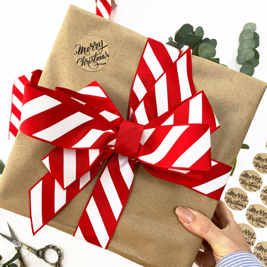 Stripe Ribbon 38mm Red & White Stripe Candy Cane Grosgrain | Christmas Wrapping Craft Wreath Bows | Metre or 25m Roll