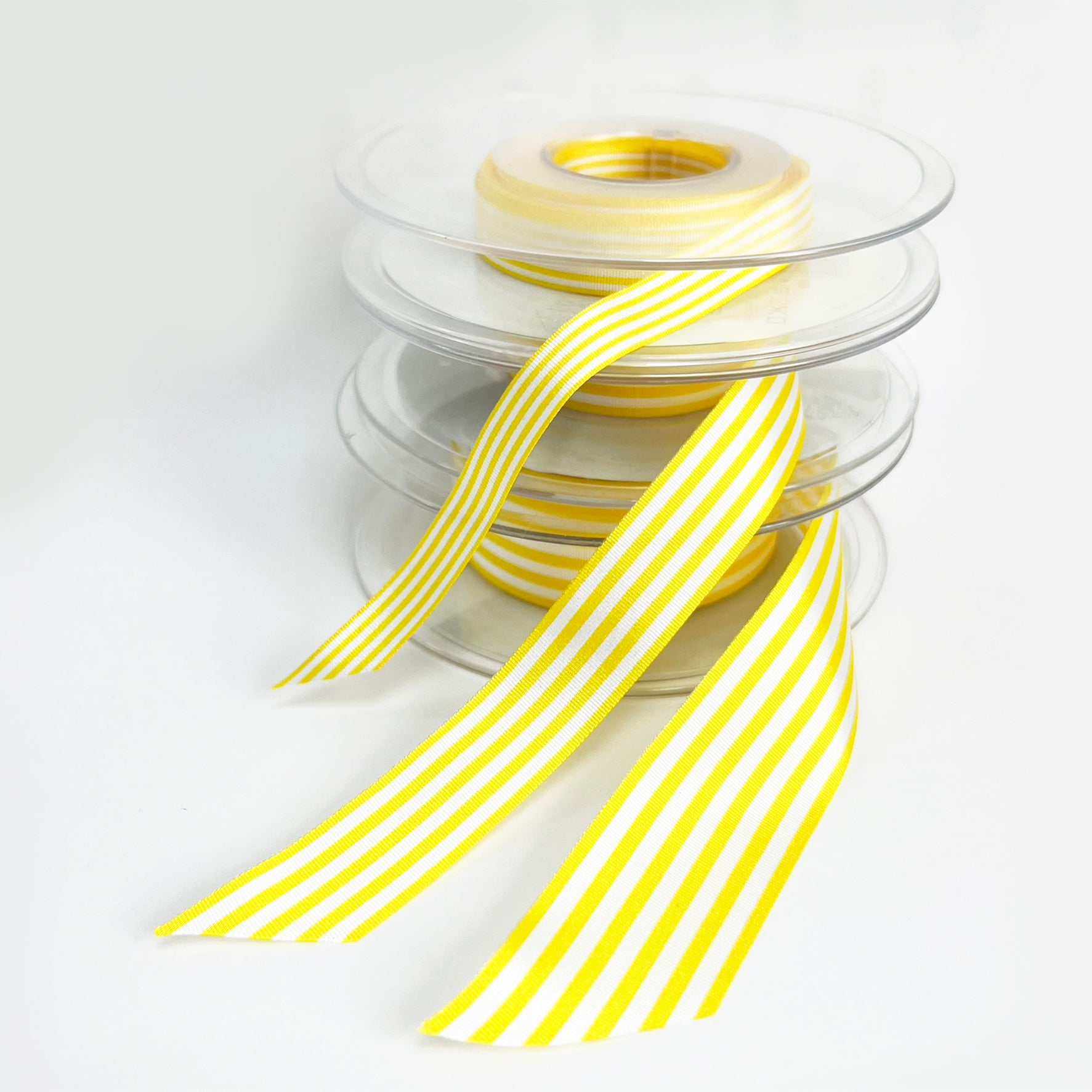 - Top quality yellow & white lightweight woven stripe ribbon from Berisford's.